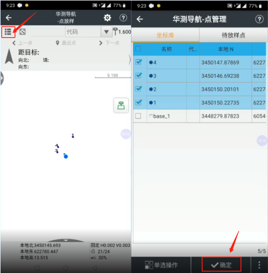 2、點擊左上角點管理圖標(注:在點管理里面可輸入放樣點坐標,點數量較多時可批量導入,放樣點添加到待放樣點庫中),打開【坐標庫】,選擇點坐標,點擊【確定】,如圖所示: