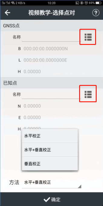 5、點擊添加,進入“選擇點對”界面,最下角方法中:只有平面坐標選擇“水平校正”;有平面坐標+高程選擇“水平+垂直校正”;只有高程時選擇“垂直校正”。如圖所示:
