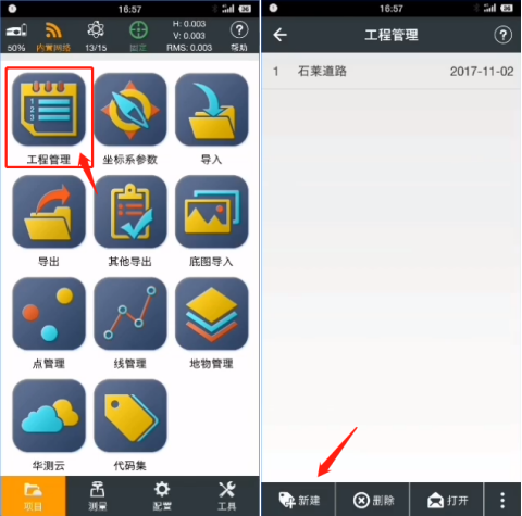1、進入LandStar7版軟件頁面,找到下方項目選項,點擊【項目】-【工程管理】- 【新建】,如圖所示: