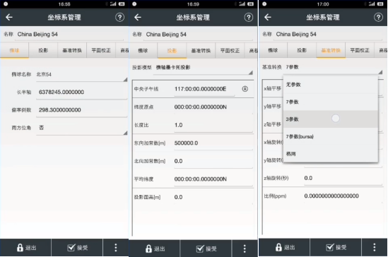 ③基準轉換如果有七參數或三參數轉換數據時一一對應輸入即可;如果沒有轉換參數則需要做點校正。