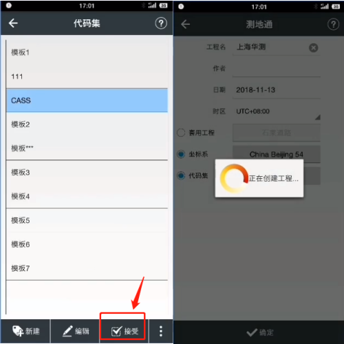 6、設置完成后,返回點擊【接受】,回到界面點擊【確定】,工程新建完成。如圖所示:
