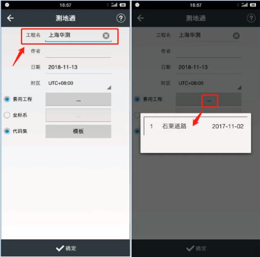 2、進入新建工程界面,工程名稱以“項目名稱”或“日期”來命名。點擊套路工程【...】,選擇需要套用的工程,點擊【確定】,如圖所示: