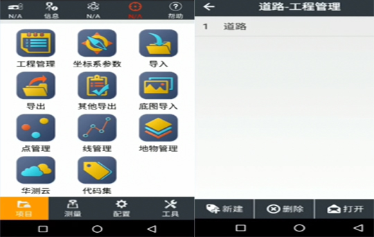 打開華測RTK手簿軟件測地通landstar7,選擇“項目”菜單,點擊“工程管理”按鈕。