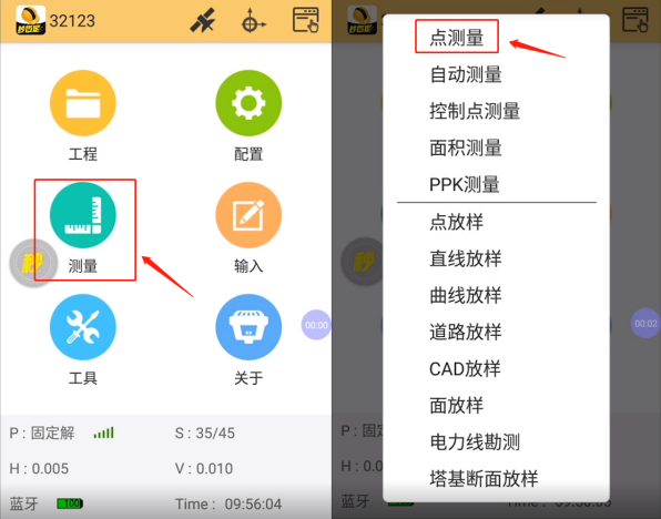 1、打開工程之星 5.0軟件,點擊【測量】-【點測量】,如圖所示:
