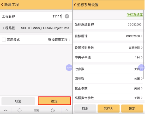 2、進入新建工程界面,輸入【工程名稱】,點擊【確定】。進入坐標系統設置界面,設置好坐標系統,如圖所示: