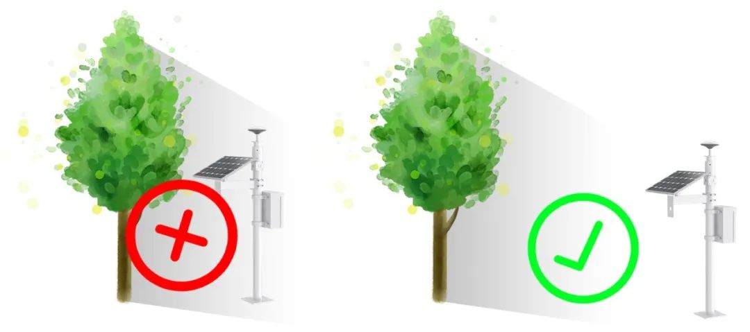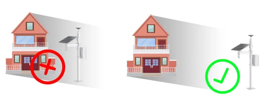 GNSS位移監測站需要采用露天安裝的方式,且監測位置要保證搜星條件好、測點位置空曠、在±15°高度截止角上空不能有成片障礙物。因為障礙物會造成信號的反射、散射、折射等,從而使信號傳播路徑變長、信號強度減弱、相位延遲等。