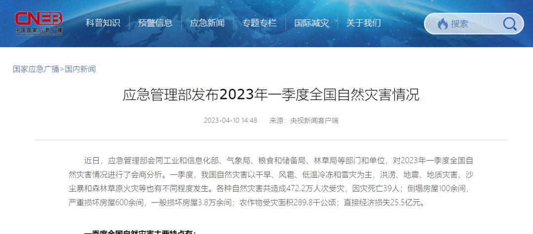 今年的一季度剛過去,地質災害統計數據便已出爐。在2023年一季度,全國共發生地質災害97起,以小型崩塌、地面塌陷為主。2023年一季度各種自然災害共造成472.2萬人次受災,因災死亡39人;倒塌房屋100余間,嚴重損壞房屋600余間,一般損壞房屋3.8萬余間;農作物受災面積289.8千公頃;直接經濟損失25.5億元。