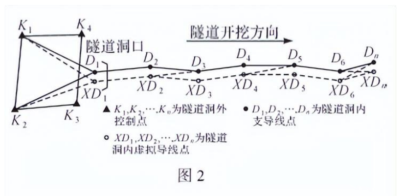 傳統(tǒng)做法是在洞內(nèi)布設(shè)邊長適當(dāng)?shù)闹?dǎo)線,布設(shè)方案簡單,觀測工作量較少,布設(shè)靈活,但由于沒有多余觀測和其他約束條件,在實(shí)際工作中即使發(fā)生錯(cuò)誤也無法檢查,同時(shí)隨著導(dǎo)線長度的增加,端點(diǎn)橫向誤差增大。