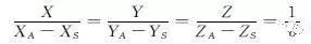 如圖所示,S(XS,YS,ZS ) 為攝影中心,A(XA,YA,ZA) 為物方任意一點,a 為A 在影像上的構(gòu)想,對應(yīng)的像空間坐標(biāo)和像空間輔助坐標(biāo)為 (x,y,-f ) 和(X,Y,Z)。滿足S、A、a 三點共線,像點的像空間輔助坐標(biāo)和物方點物方空間坐標(biāo)之間的關(guān)系為: