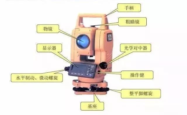 電子全站儀由電源部分、測(cè)角系統(tǒng)、測(cè)距系統(tǒng)、數(shù)據(jù)處理部分(CPU)、通訊接口、顯示屏、鍵盤(pán)等組成。