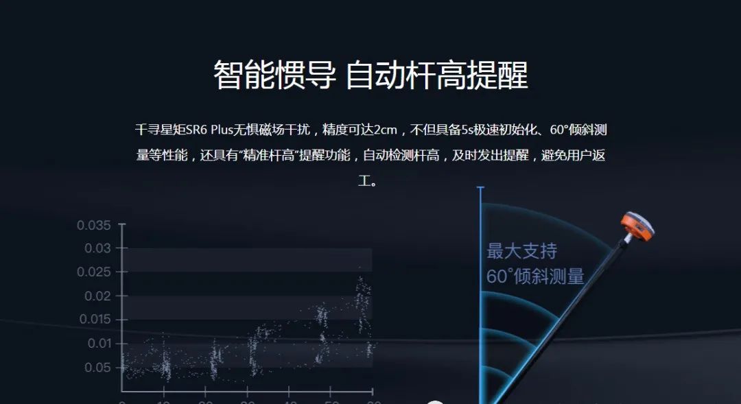 千尋星矩SR6 Plus是一款人工智能互聯網RTK,內置自主研發的智能算法支持設備自動升級,具備語音控制、智能客服、遠程協助等人性化功能, 真正實現“越用越好用”。延續千尋RTK云端一體特點,具備電離層抑制能力,有效應對當前電離層抑制擾動,提升固定率和固定精度。