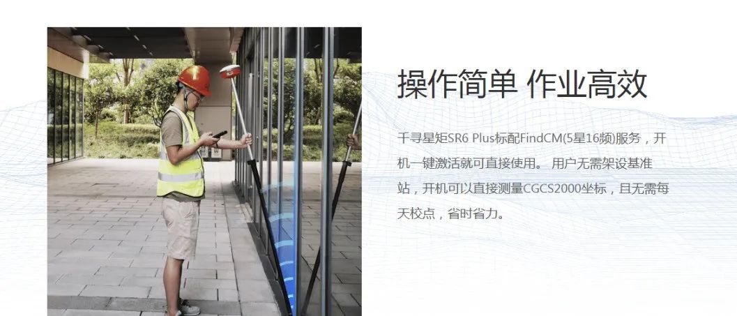 內置FindCM (5星16頻)服務,千尋星矩SR6 Plus全面支持北斗全體制信號,實現30秒固定;基于5星16頻服務,可用衛星50+,能夠滿足城市多路徑、樹蔭遮擋、樓宇遮擋等復雜環境下的測量要求。