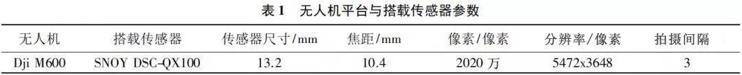 本文工程使用DjiMatrice600電動多旋翼無人機,通過搭載五鏡頭高分辨傾斜相機進行同步影像數據采集,并搭載高精度IMU/POS裝置對無人機位置信息進行實時記錄,并利用RTK設備進行地面點數據采集。航攝所用無人機平臺與搭載傳感器參數見表1。