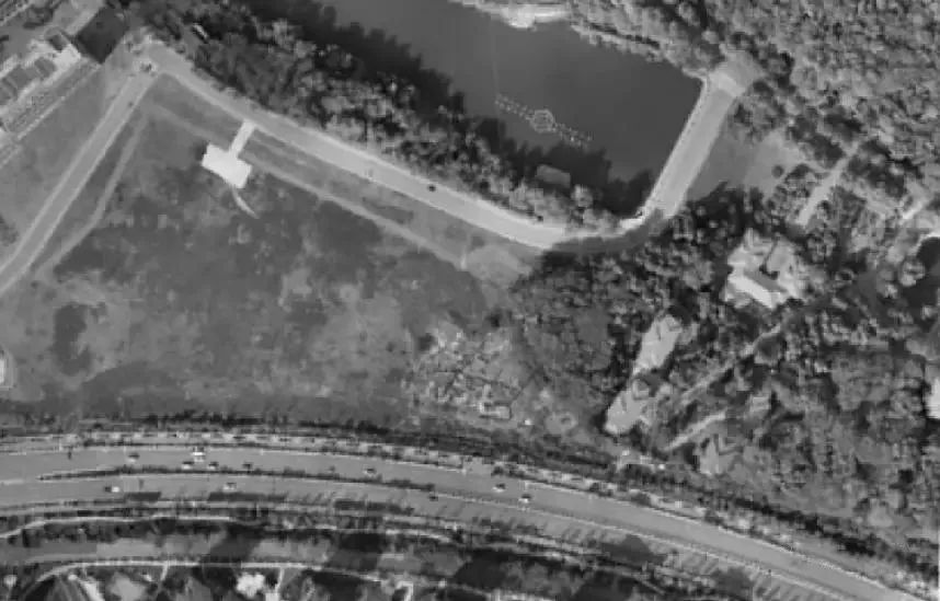 同時,通過實地踏勘和實景照片對比可以發現,自動分類的點云數據存在一定的錯誤分類,如將植被識別成地面點、將地面點識別成樓面點等,這些數據的錯誤識別會對后期的土方計算造成影響,在計算前需要進行一定的糾正。本次試驗采用目視糾正分類方法對自動分類結果進行糾正,對于錯分類地物點進行重新分類。同時將分類圖與實景照片進行疊加,實現對非地面點云細化分類,創建高大植被、低矮植被、建筑物、湖泊等新數據類型。目視糾正后分類結果如下圖所示。