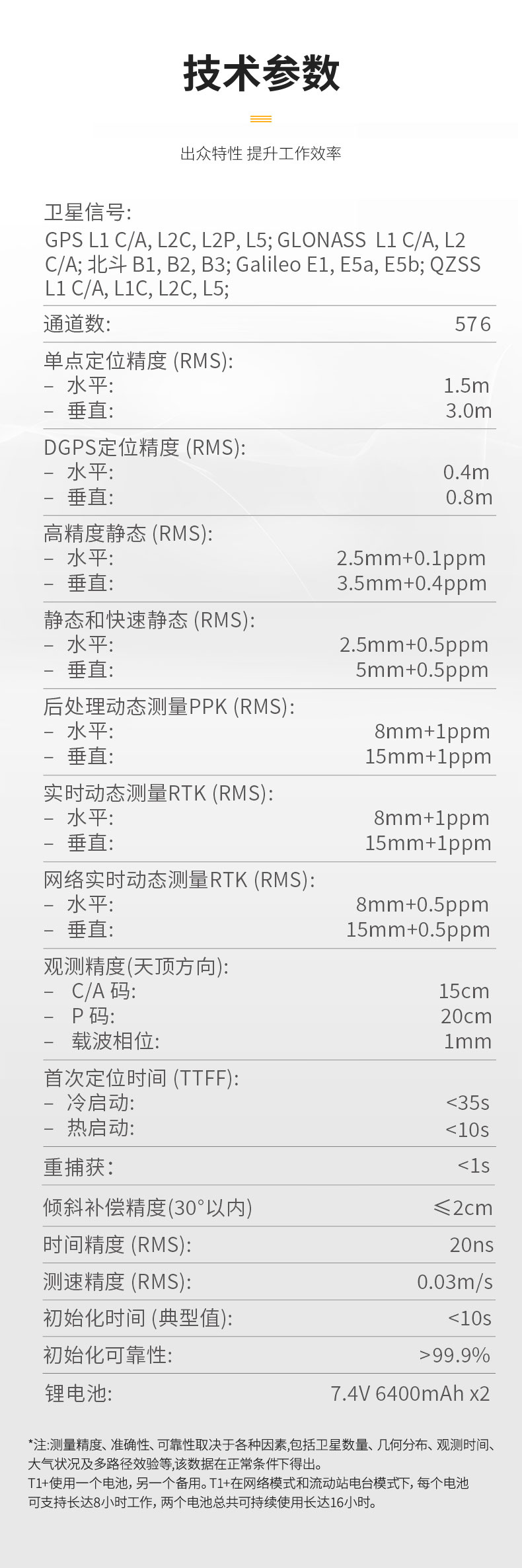 智能電池可顯示電量,兩塊電池可供T1+在4G/3G/2G網(wǎng)絡(luò)或流動站電臺模式下工作長達16小時