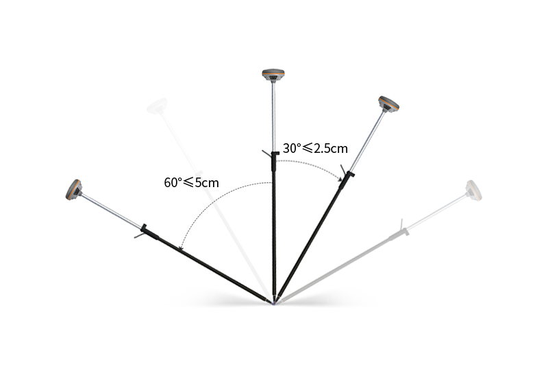 內置IMU慣性測量傳感器能根據對中桿傾斜方向和角度自動校正坐標,無需對中,點到即測。
