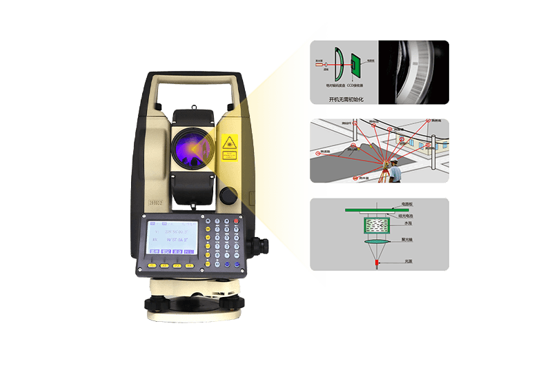 采用國際領先的絕對編碼、激光免棱鏡、光電式雙軸圓電子氣泡補償等技術,擦用先進的高集成度電子元件,使測角測距一塊板;采用密封結構,防水防塵等級達到IP55